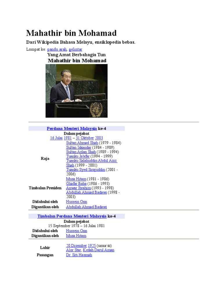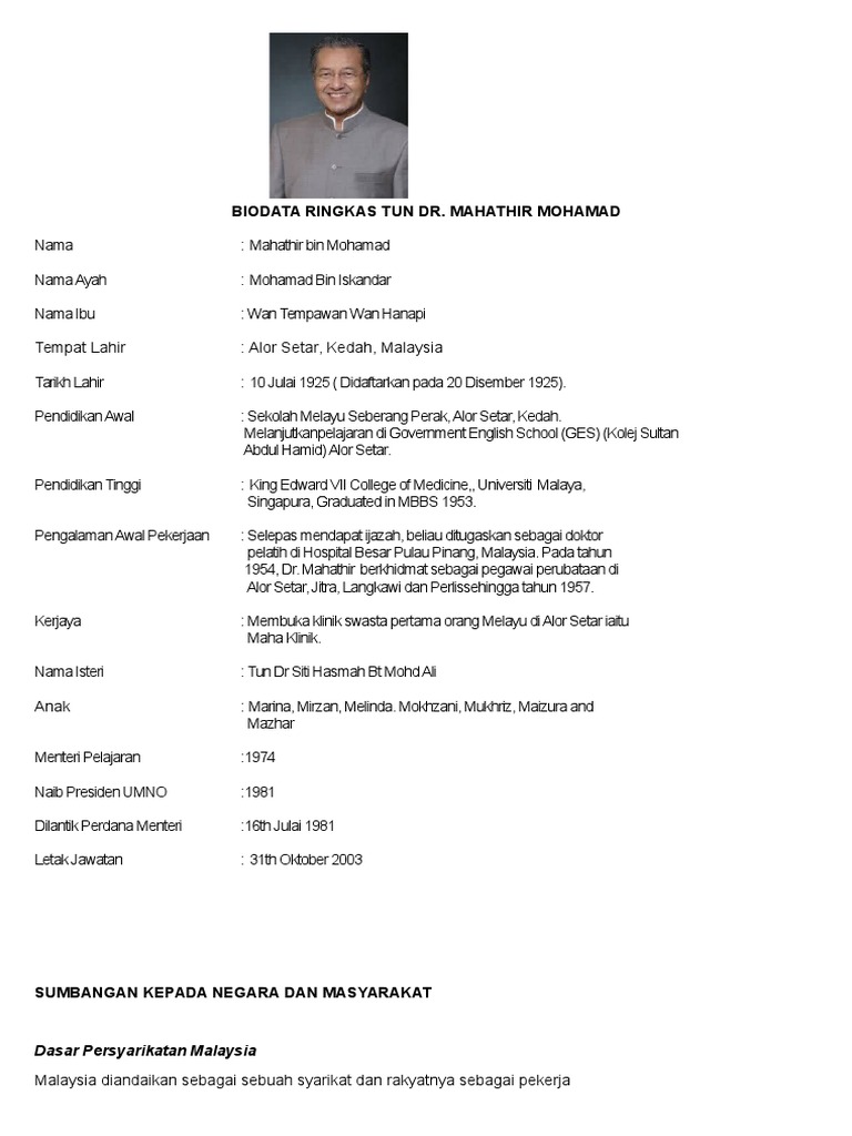 Biodata Tun Dr Mahathir Bin Mohamad Pdf